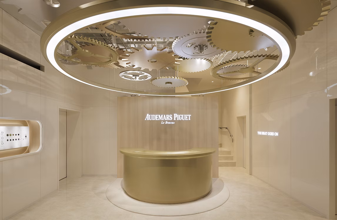 Die Ausstellungsfläche an der berühmten Luxus-Shoppingstraße Namiki-dori in Ginza erstreckt sich über zwei Etagen und bietet eine Reihe thematischer Räume. Betreten Sie das „House of Wonders“, inspiriert vom historischen Atelier der Manufaktur aus dem Jahr 1907, das bis heute als Hauptsitz dient, und entdecken Sie die faszinierende Welt der Uhrmacherkunst von Audemars Piguet.