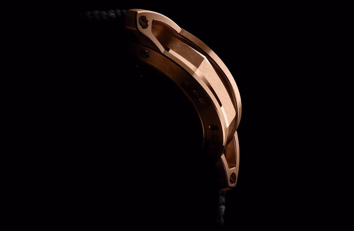 Lacquered black dial, 18-carat pink gold applied hour-markers and hands, 24-carat pink gold applied logo in galvanic growth, lacquered black inner bezel.