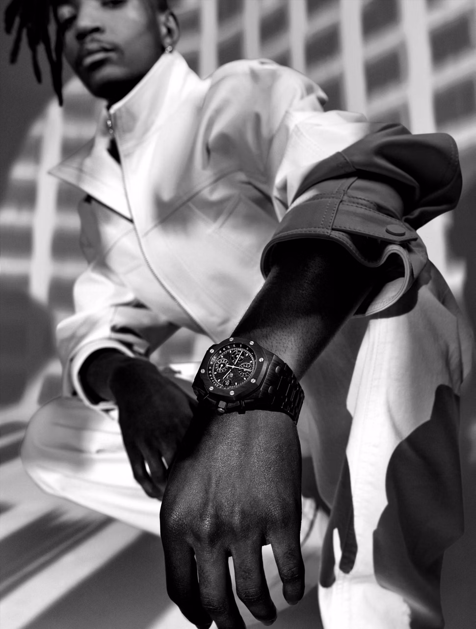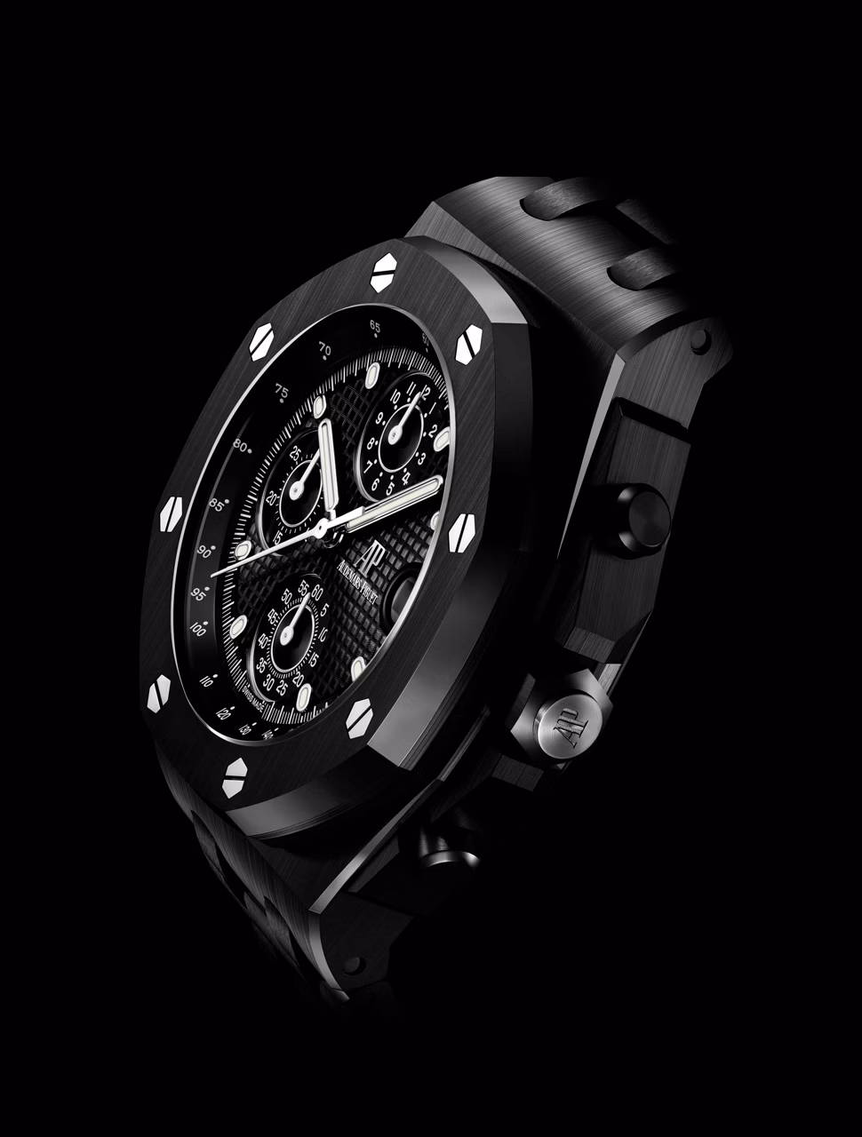For the very first time, Audemars Piguet introduces a black ceramic case and bracelet to the collection with this model featuring a Petite Tapisserie dial that combines technicity and design.