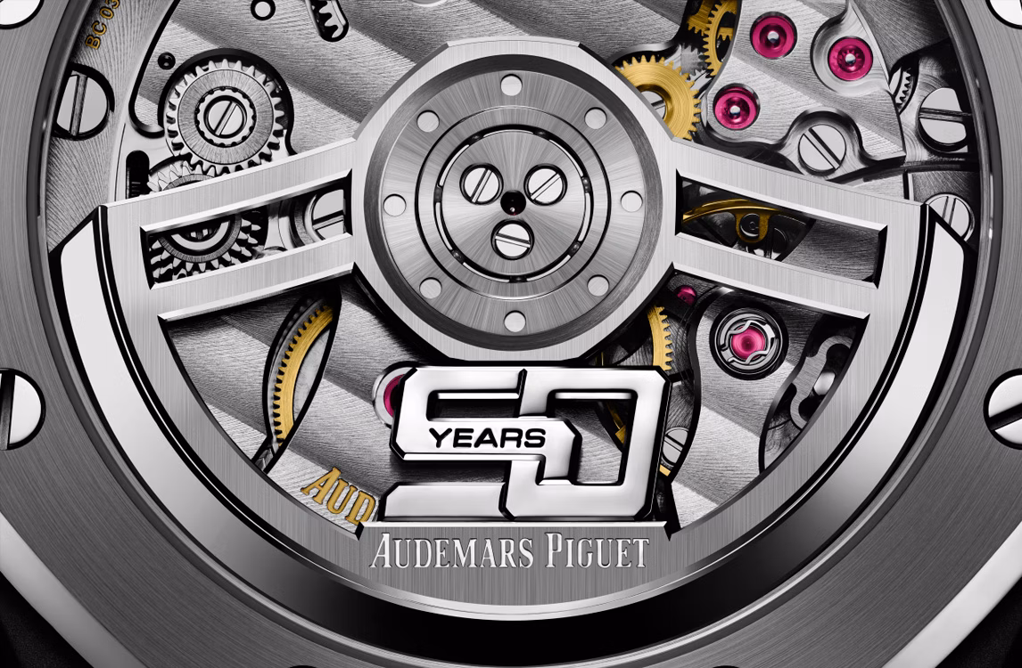 “Bleu nuit nuage 50” dial with “Grande Tapisserie” pattern, white gold applied hour-markers and Royal Oak hands with luminescent coating.