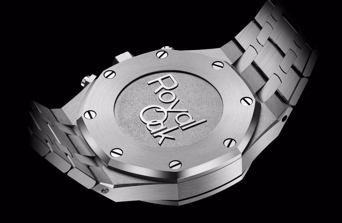 Esfera azul claro con motivos «Grande Tapisserie», contadores plateados, índices aplicados y agujas Royal Oak de oro blanco con revestimiento luminiscente.