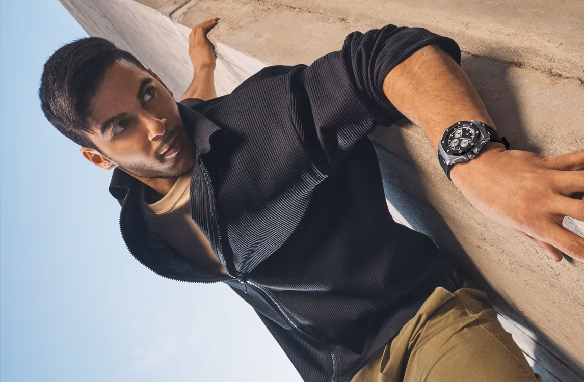 Il modello da 43 mm di nuova concezione in acciaio e ceramica nera arricchisce il cronografo flyback della Manifattura con un esclusivo quadrante nero "Méga Tapisserie" e un cinturino in caucciù intercambiabile.