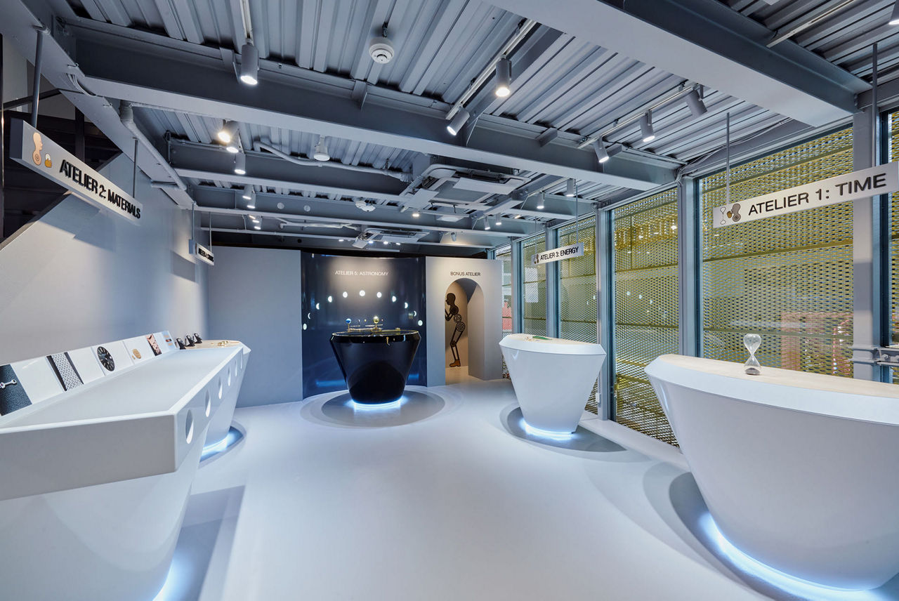 2フロアからなる「AP LAB Tokyo」は、エデュケーション(教育)×エンターテイメント(娯楽)をかけ合わせた“エデュテインメント”をコンセプトにした、世界初となるオーデマ ピゲの施設。ゲームを通して、時計師にとって欠かせないさまざまな要素を学ぶことができる。