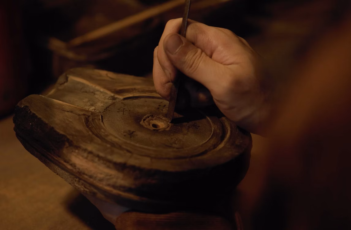 工房に足を踏み入れると、まず目に入るのは無数の木型だ。古くは明治時代から使われ続けてきたものまで大切に保管され、棚いっぱいに積み重なった姿は、長い年月を支えてきた技の蓄積そのものを思わせる。