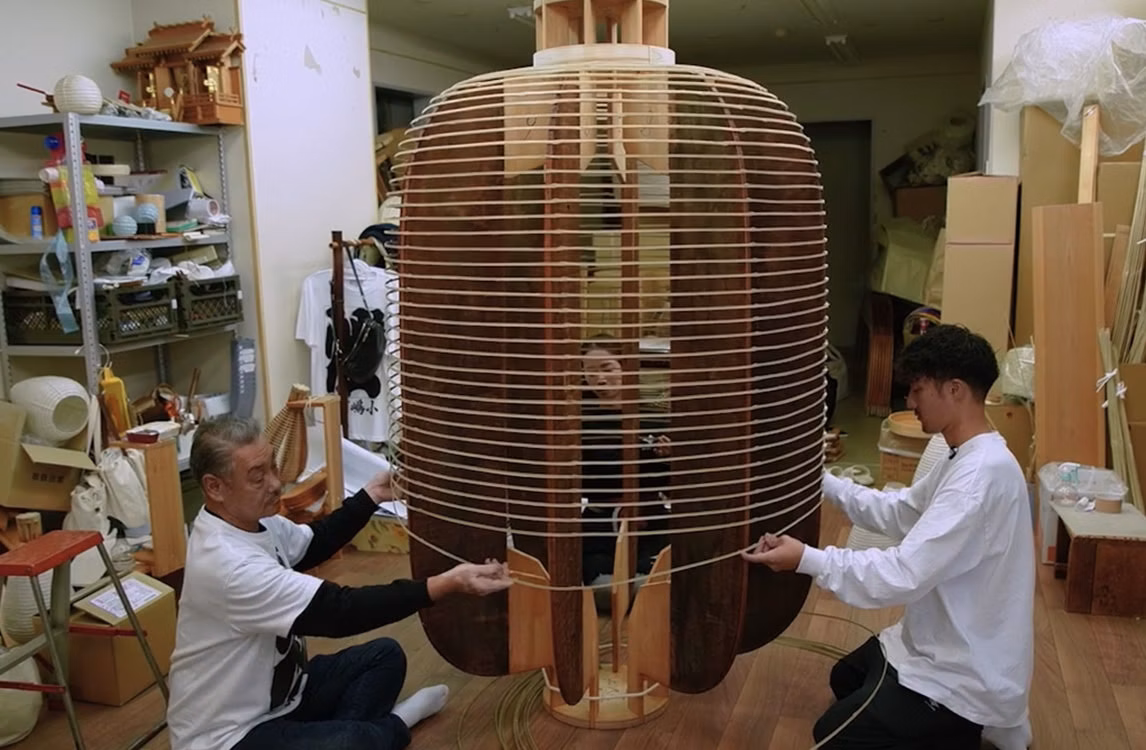 提灯作りに携わっているのは、小嶋とその妻、先代、そして小嶋の兄も京丹後で竹割を担っている。まさに家族経営の工房だ。先代は「息子たちが継いでくれて、新しいことにも挑戦できて、今は仕事がとても楽しい」と目を細め、小嶋は「祖父や父が外注に任せず、自分たちでやってきてくれたから技術が残っている」と誇らしげに語る。