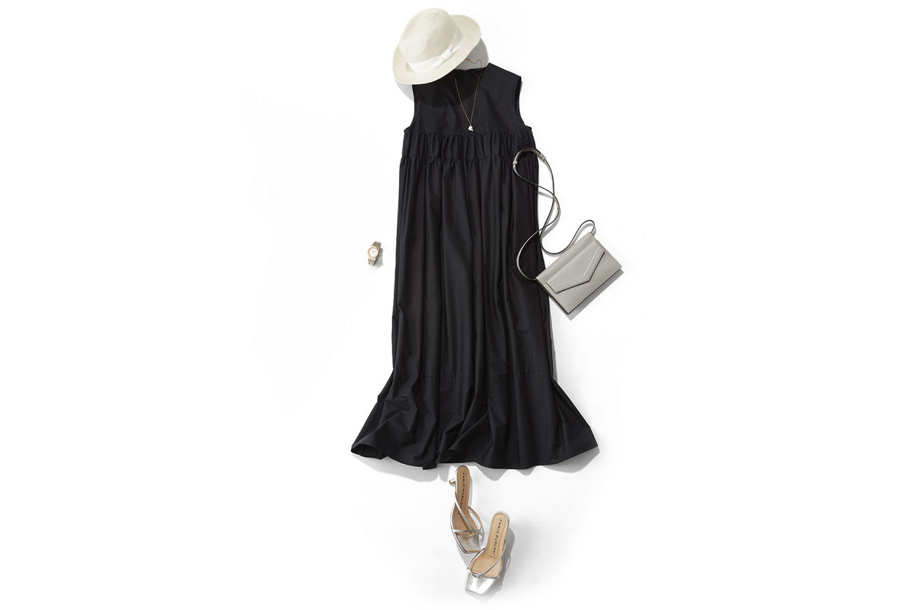 〈女性〉ワンピース¥59,400/ヨーコ チャン TEL:03-6434-0454、ネックレス¥13,000/アルス(ジェンマ アルス ジャパン TEL:03-6438-0178)、バッグ¥110,000/スマイソン TEL:006633814600、その他スタイリスト私物