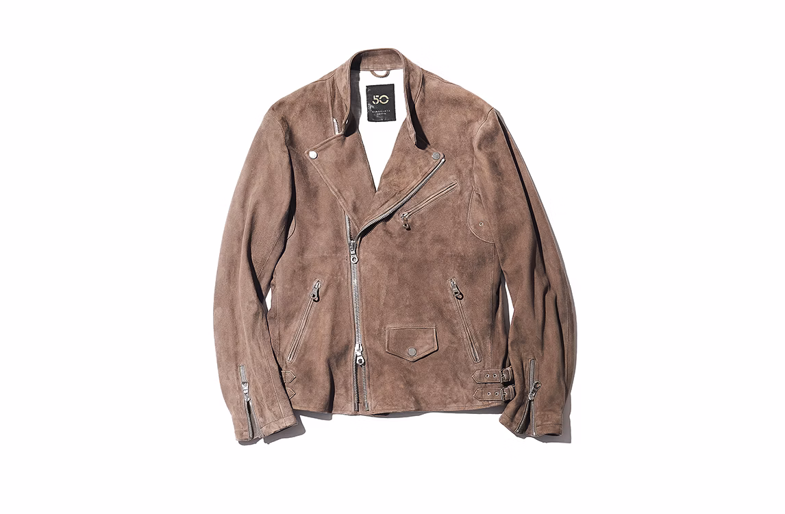 ニュートラルなカラーとスエードの素材感が、フレッシュな印象を与えてくれるダブルのレザージャケット。Tシャツ、デニムに羽織るだけで、カジュアルなスタイルが上品な装いに。レザーのグレージュといい、腕元のCODE 11.59のライトグレーといい、大人だからこそ似合うカラーが、シンプルな着こなしに深みをもたせる。