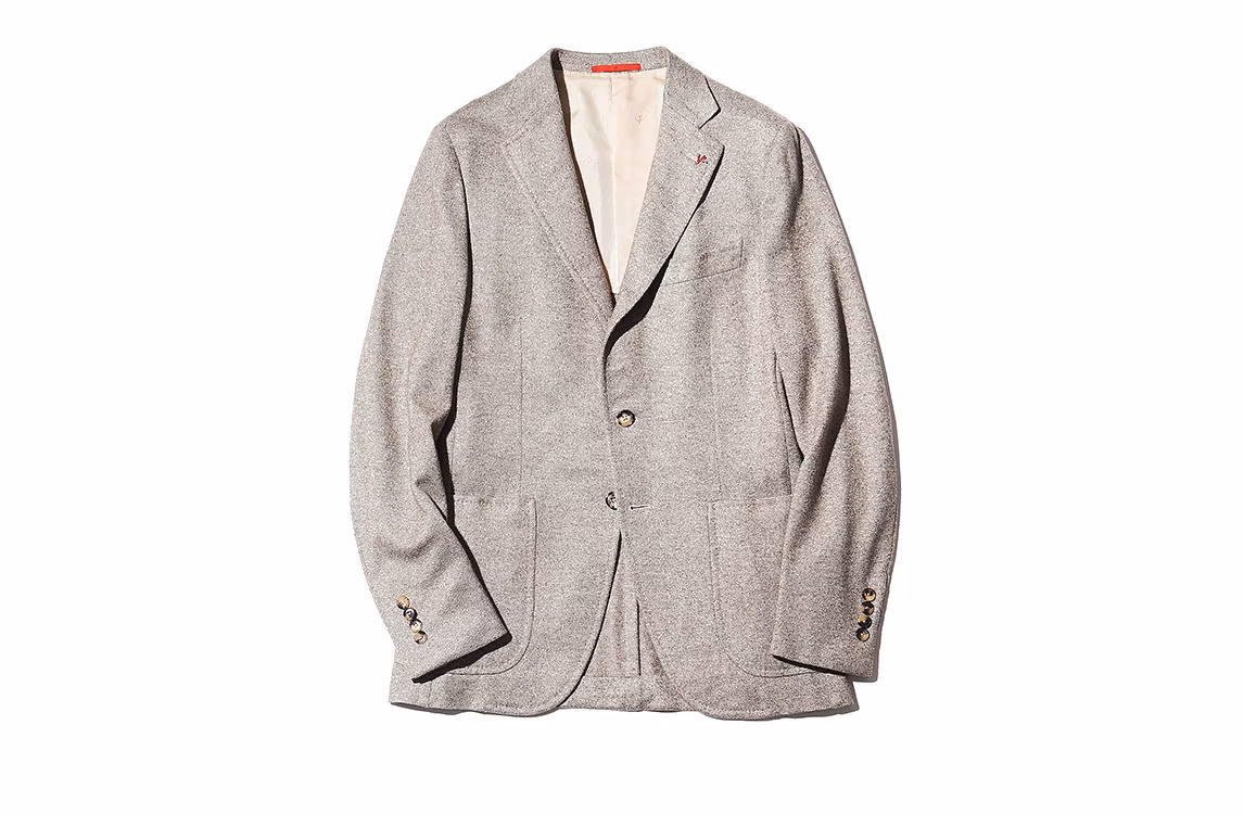 ナポリスタイルを受け継ぐ品のよいベージュのジャケットを、オフホワイトのタートルニット、ベージュのスラックスと、同系色のアイテムでまとめたエレガントなスタイル。腕元に添えるのは、美しいカラーグラデーションを描くスモークグレーのCODE 11.59。シックなカラーの腕時計は、こんな貫禄ある佇まいにこそ相応しい。