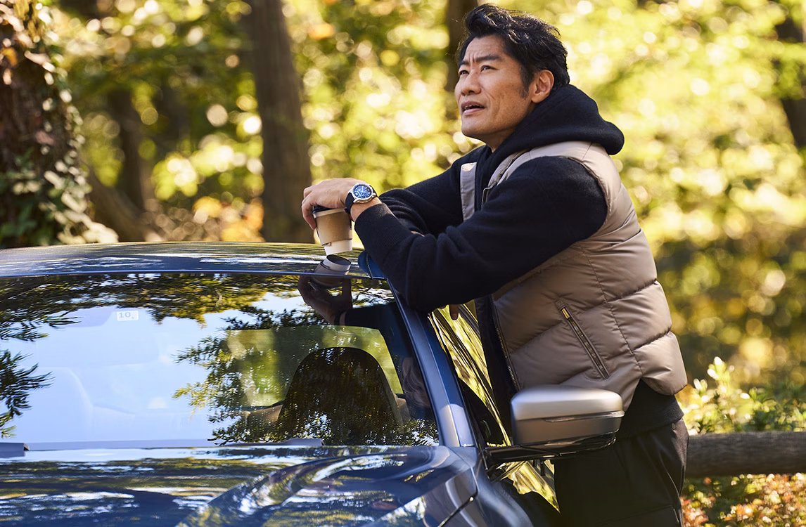 質実剛健でいて官能的なスタイルの2ドアクーペに乗り込み、ハンドルを握りしめてエンジンを吹かす。爽快なドライブの装いは軽快に。カシミア素材のフーディにラグジュアリーなダウンベストを合わせ、腕元にはCODE 11.59のクロノグラフモデルを着用。郊外の高級レストランに行くためでもなく、大掛かりなキャンプ道具を運ぶためでもない。目的もなく、ただひたすらクルマを走らせる、ひとりきりの上質な時間——駆け抜ける歓びをエレガントなタイムピースとともに。