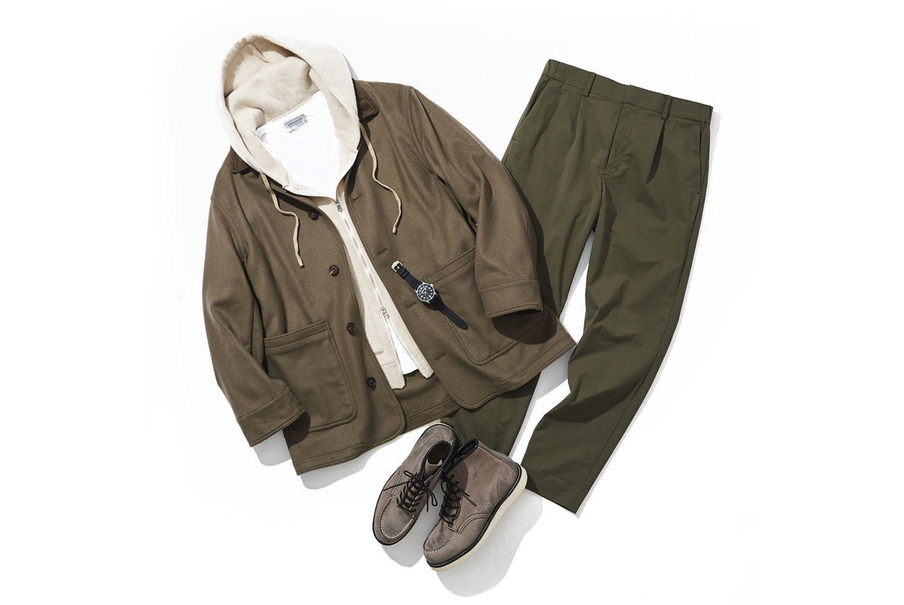 コート¥59,400/ジーニック(ビームス F TEL:03-3470-3946)、パーカ¥52,800/バレナ(三喜商事 TEL:03-3470-8232) パンツ¥29,700/エストネーション(エストネーション TEL:0120-503-971) インナーのTシャツ、シューズ/スタイリスト私物