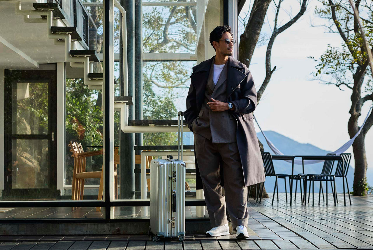 大海原を見渡せる、崖の上にそびえ立つ別邸がデスティネーション。壮大なロケーションにふさわしい、立体的な造形美を表現するコレクションの新作モデルが今回の旅のパートナー。ステンレススティール素材を纏い、より軽快に、よりモダンに進化したCODE 11.59を、セットアップとスニーカーという上品でラフな装いに合わせ、優雅にひとりで過ごす時間を堪能して。