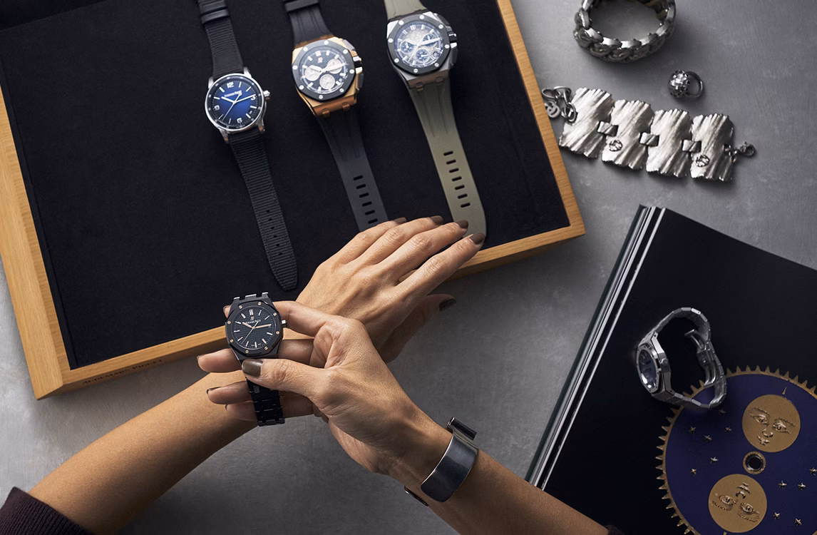 「いわゆる“オフショア”は、ボリュームがあるぶん、スタイリングの観点からだけなら少し難しさもあるんです。ともすると主張しすぎてしまう。それでも、このモデルが素敵だと感じたのは、柔らかなピンクゴールドの輝きとセラミックのマット感がもたらす上品なコントラストゆえ。ラバーストラップをアリゲーターに交換すれば、フォーマルにもカジュアルにもこなせます。この時計のおかげで、ゴールドウォッチが40代半ばの自分にも似合うようにも感じられました」