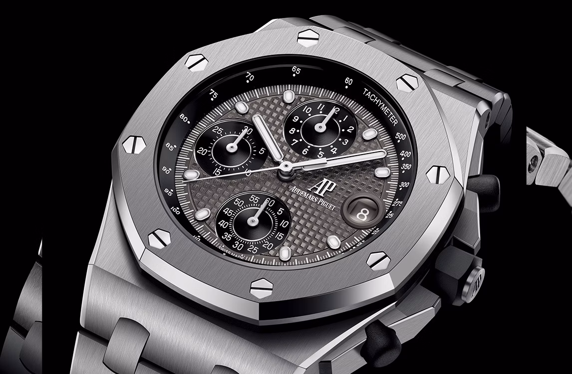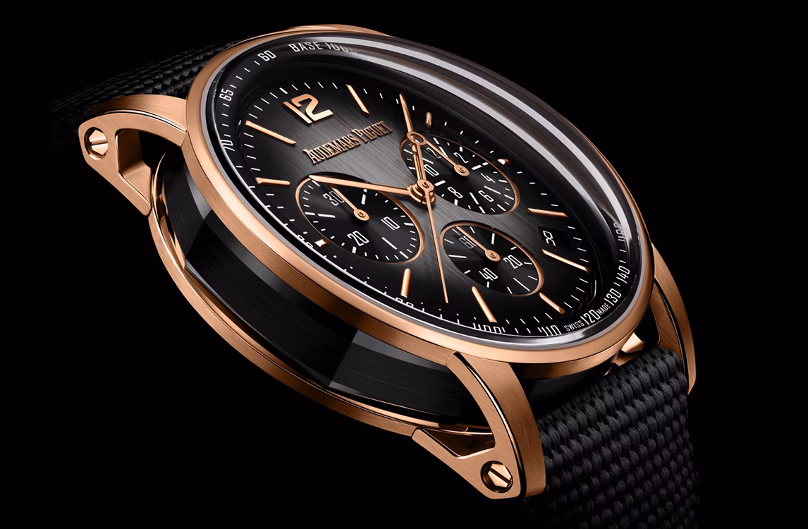 「おそらく、オーデマ ピゲのクロノグラフで最も複雑な設計のひとつ。スペースがないにもかかわらず、文字盤の2時位置には、なんと12時間積算計が。しかも、クラッチを持たない簡易型ではなく、往年の高級機よろしく、12時間積算計専用のクラッチを搭載。造型や仕上げ、ムーブメントの巧みな取り回しからは、熟練した手腕が感じられます」