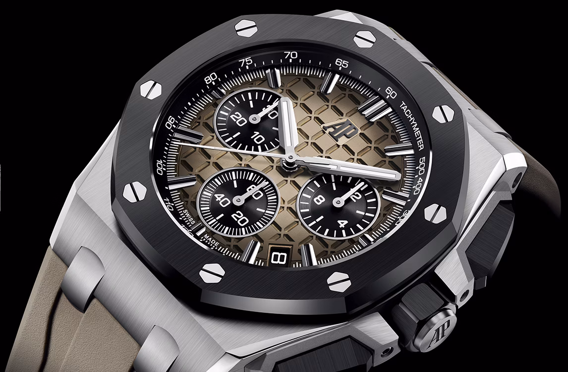 「“オフショア”初のフライングトゥールビヨンのフライバック。“CODE 11.59”に搭載したキャリバーを刷新し、よりスポーティに。これを43㎜径のチタンケースに抑え、力強さを損なうことなく、フィット感と軽快感を両立。次世代の“ラグスポ”だと思わせます」