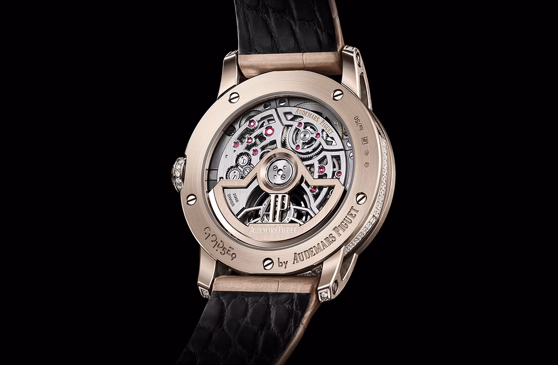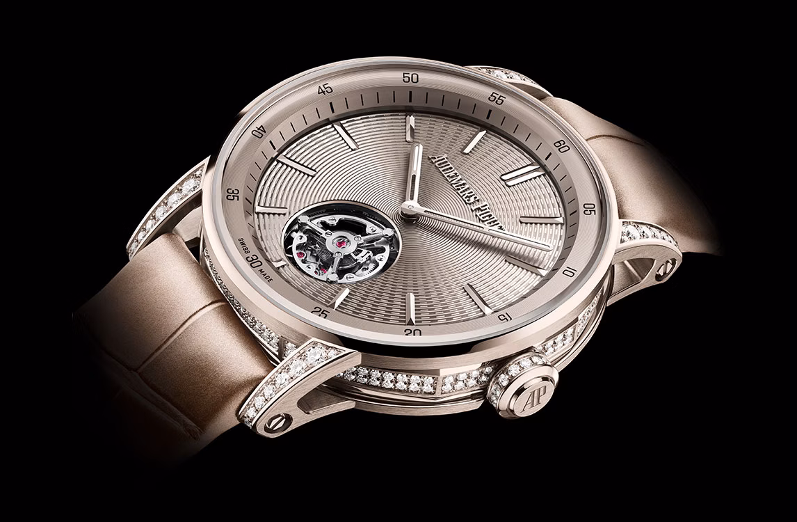 ケースミドル、ラグ、リューズ、APフォールディングバックルには、277個のブリリアントカット ダイヤモンドがセットされている(約1.36カラット)。