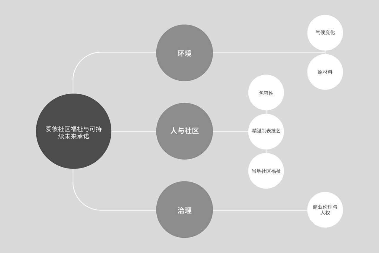 在ESG专项小组与外部利益相关方的共同指导下,爱彼将可持续发展融入最高决策流程。这一架构助力高管团队在社会与环境绩效、透明度及责任担当方面恪守至高标准。我们致力于打造安全且兼具伦理考量的供应链体系,与合作伙伴共同制定负责任的行业准则。