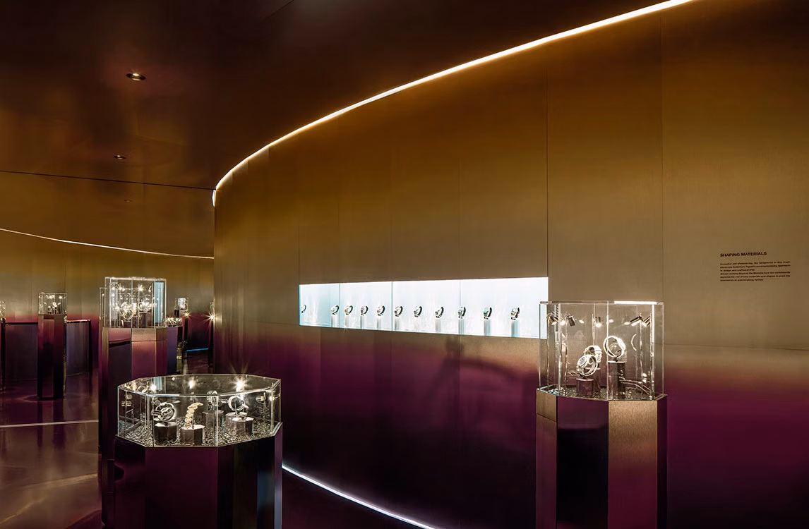 三個展廳分別展示精心甄選的古董珍藏腕錶與當代錶款,其中包括年初問世的愛彼CODE 11.59系列Universelle超複雜腕錶 (RD#4)。這些傑作集傳統工藝、現代科技、人體工學與當代設計於一身,盡顯卓越風範。展覽亦將對愛彼的材質與寶石探索之旅進行深度介紹,揭示色彩及其象徵意義展現的藝術美學。