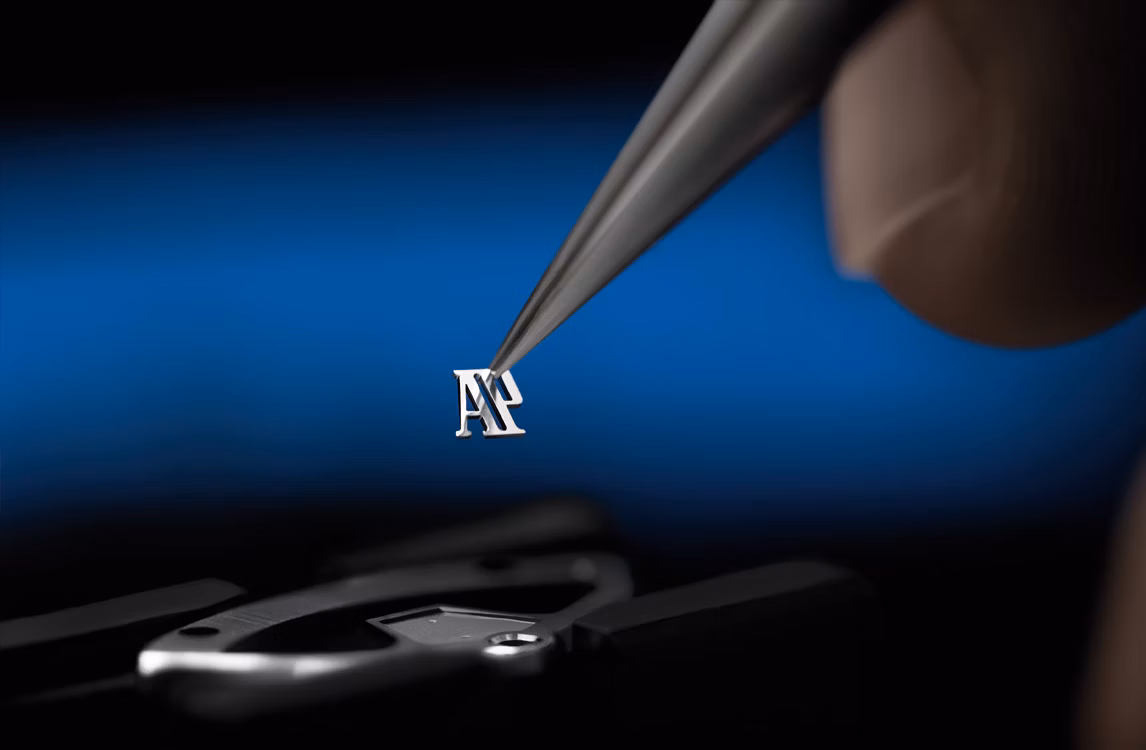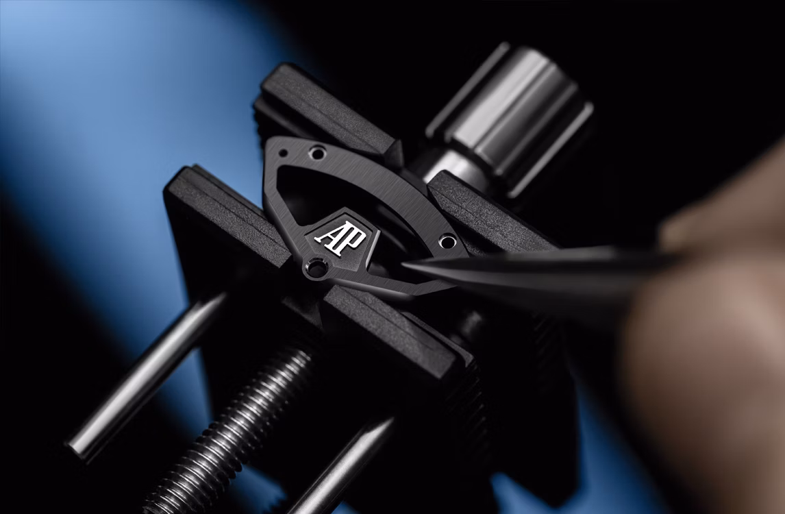 黑色易換式橡膠錶帶搭配微珠噴砂鈦金屬AP字樣折疊扣